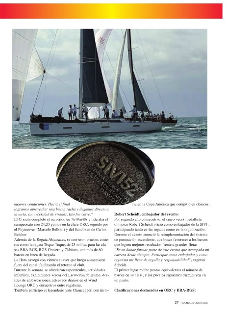 También participó el legendario yate Chancegger, con histo- Clasificaciones destacadas en ORC y BRA-RGS: