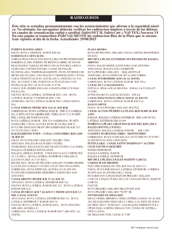 ca. No obstante, los navegantes deberán verificar los radioavisos náuticos a través de los diferen-